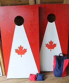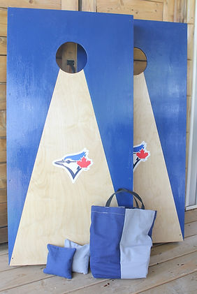Same Corn Hole Boards as above (with solid sturdy construction) plus added team logo, maple leaf, or other custom graphic. Complete with regulation throwing bags and customized carrying bag. Custom finish in a variety of colours to match theme. All boards clear-coated to ensure they can withstand abuse and the elements. Logos/colours are limited to what I can reasonably obtain. Let me know what you are wanting and I will see if I can make it happen.