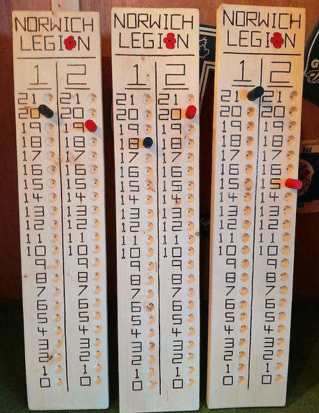 Score Board for Corn Hole made of thick 2" x 10" wood, with large 1" diameter colour coated scoring pegs and numbers burnt into the wood so they can be seen from a distance. Pegs can be painted in a variety of colours to match your boards or throwing bags. Text on boards can be customized for you. Great addition to your Corn Hole package.